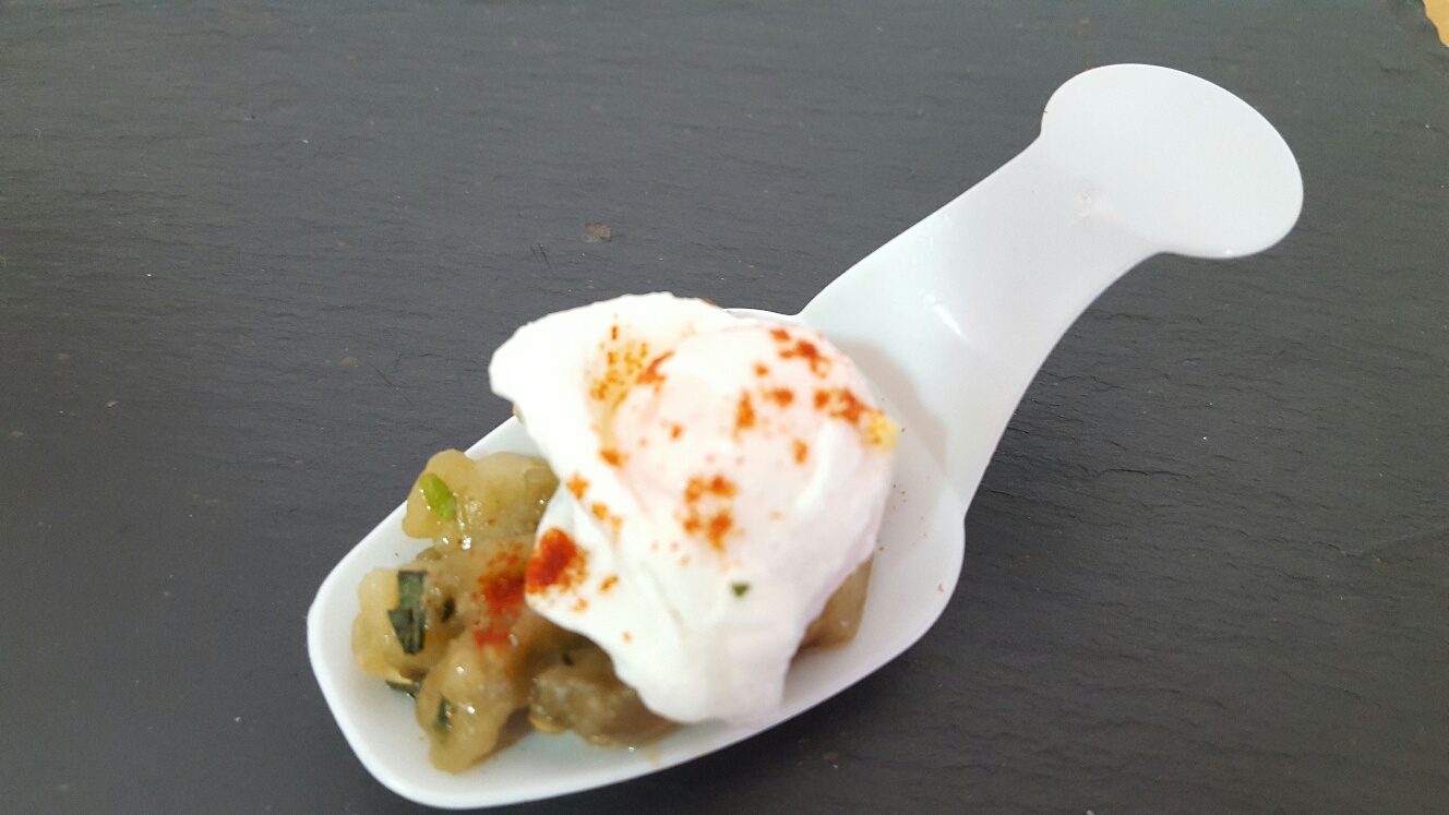 Cucharitas de berenjerna con huevos de codorniz