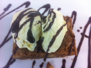 Brownie de chocolate con helado de vainilla