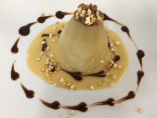 Semifrío de yogur con coulis de mango